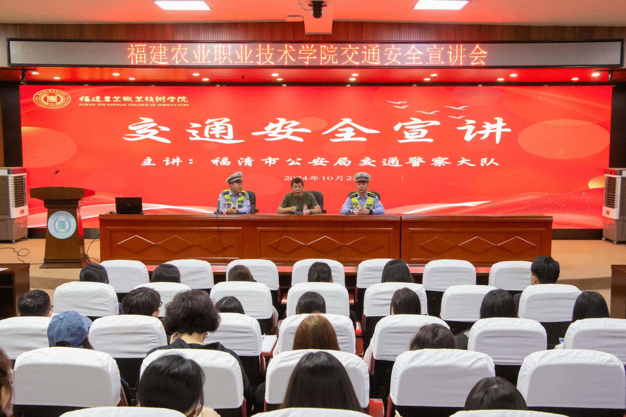 为进一步增强学生交通安全意识,提高自我保护能力,2024年10月25日下午,我校邀请福清市公安局交警大队镜洋中队进校开展交通安全宣讲。各二级学院安全员、安全保卫处工作人员、学生代表共240人参加宣讲会。会议由安全保卫处陈剑波处长主持。