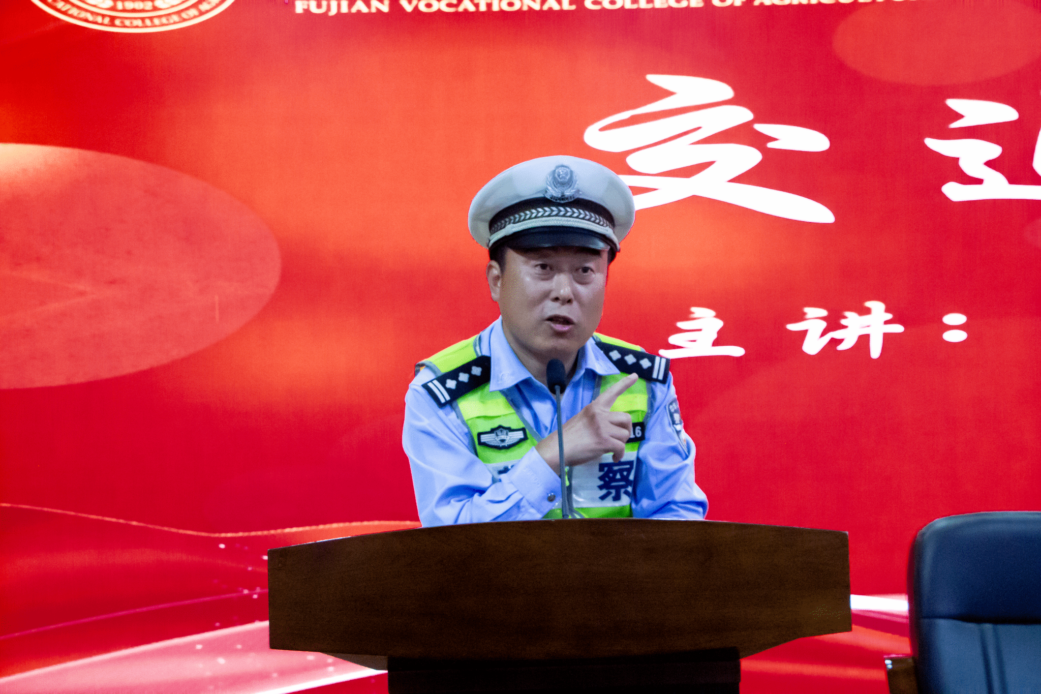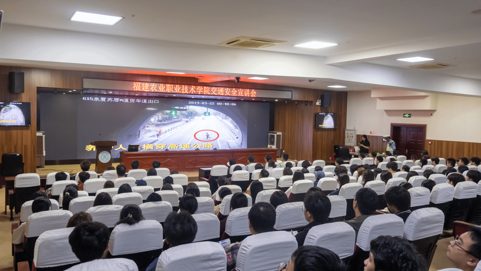 会上,交警中队民警现场发放交通安全宣传资料、播放交通事故警示视频。视频中一起起令人揪心的事故、一幅幅令人心痛的画面,另在场的师生无不为之动容、为之叹息。视频结束后,俞副队长结合视频宣讲交通安全知识。他分析学院校门口104国道交通的5个特点,即:地处弯道、上下坡、车流量大、车速快、交通参与者多,交通安全隐患较为严重。他呼吁全体师生穿过国道前务必要一停、二看、三通过,确保安全后方可通过。俞队长还详细分析了车祸的14个原因,即:无证驾驶、酒后驾驶、分心驾驶、疲劳驾驶、不系安全带、不戴安全头盔、逆行、超载、超速、车辆改装、毒驾、闯红灯、不遵守交通规则、货车盲区等。他呼吁同学们珍惜生命,自觉遵守交通法规,系好安全带、戴好安全头盔、不酒驾、时刻将交通安全牢记于心、落实于行,做到对自己、对家人负责、对社会负责。