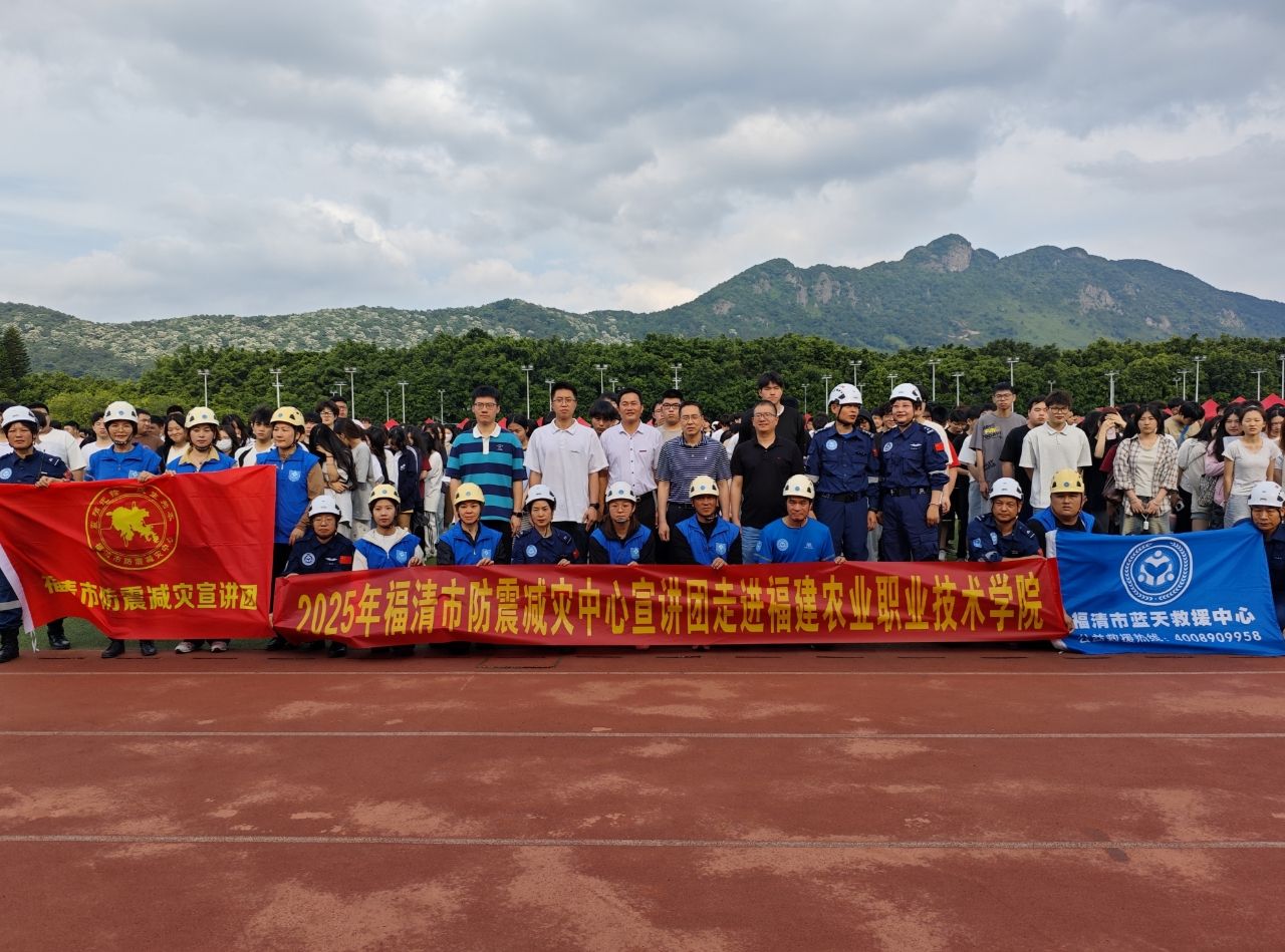 5月13日,由福清市人民政府抗震救灾指挥部暨防震减灾联席会议办公室、福清市防震减灾中心、福清市镜洋镇人民政府联合主办,福建农业职业技术学院、福清市蓝天救援中心共同承办的2025年“5·12”防灾减灾科普系列活动圆满举行。学院党委副书记王振亮,福清市防震减灾中心主任黄诚华,福清市镜洋镇人民政府党委政法委员、武装部部长林义金,福清市应急局张致楠等相关领导出席活动,学院各相关职能部门、二级学院师生1000多人踊跃参与。福清市蓝天救援队何建玲老师带领蓝天救援队成员为本次活动提供全程专业指导
