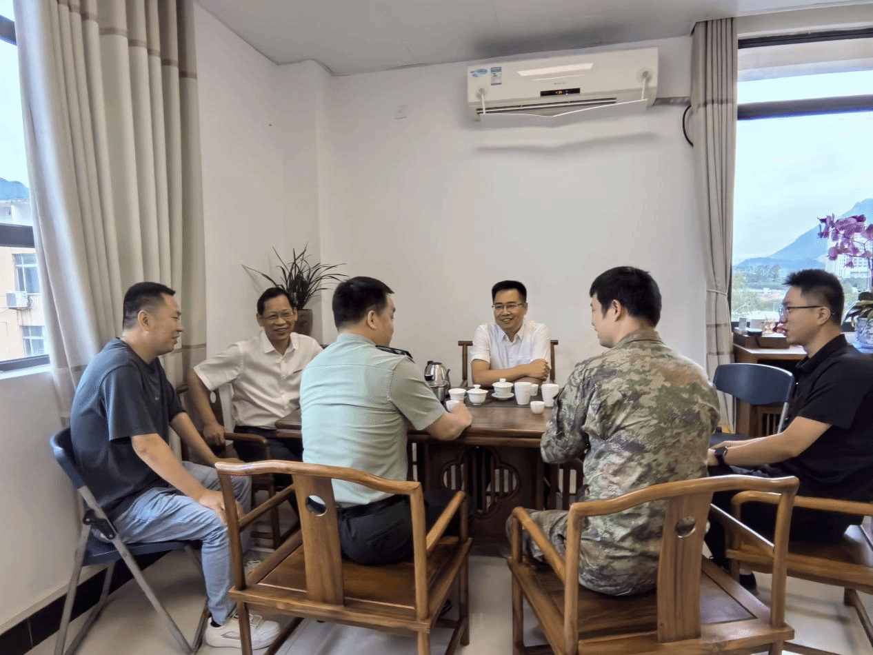 2025年6月5日下午,福清市人武部政委潘传华率参谋叶明明一行莅临我校开展专题调研。镜洋镇党委委员、武装部部长林义金,副部长陈辉陪同调研。学院党委书记杨振坦、党委副书记王振亮热情接待调研组,安保处负责人陈美参加座谈交流。