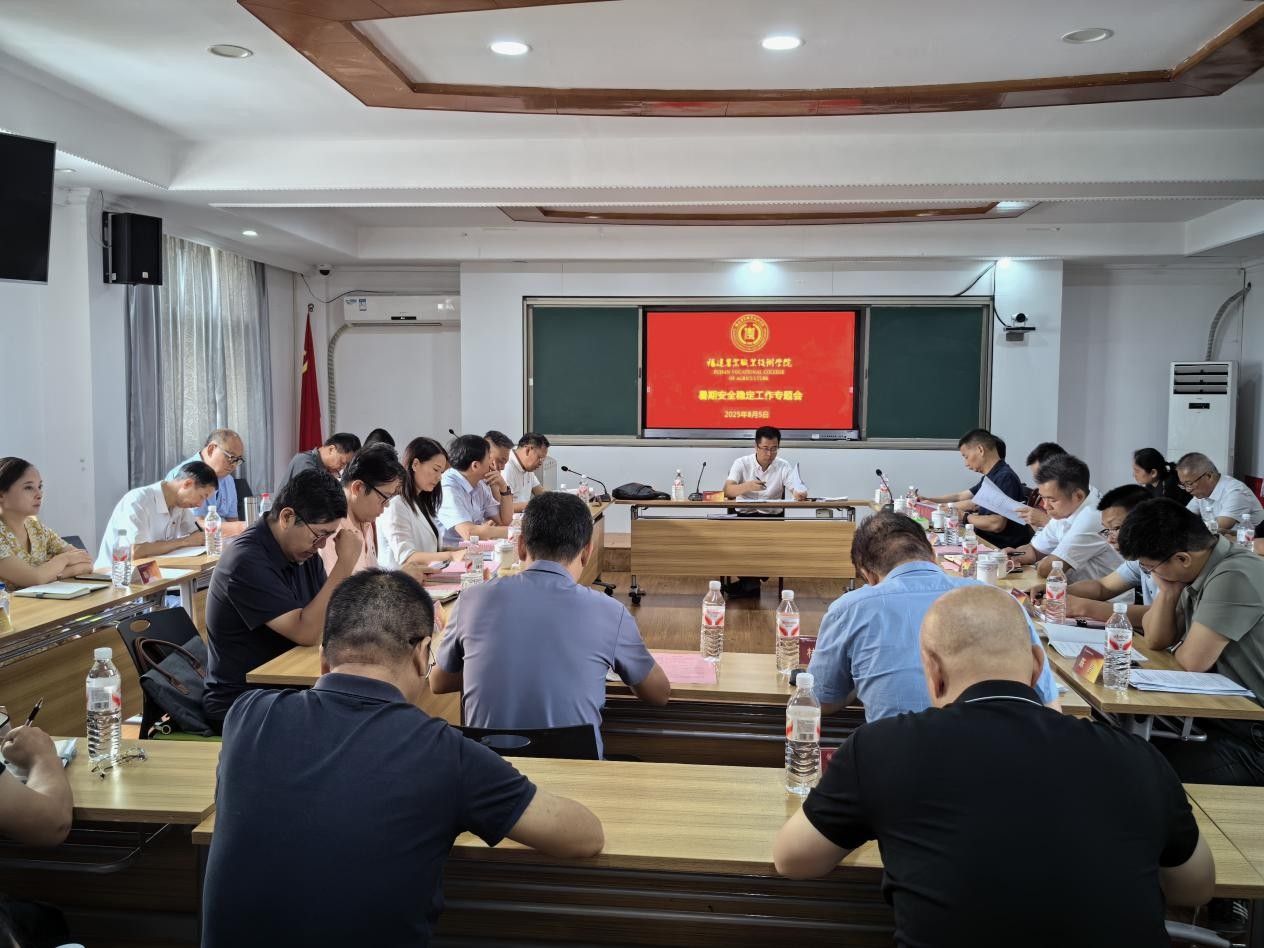 会议强调,要吸取近期全国多地发生的涉校安全事件教训,以“时时放心不下”的责任感,紧盯关键,分类施治,做好各项安全工作。一要警惕“三不”守住“三不”。强调暑期风险易发多发,针对实习、社会实践等强化责任意识,“三下乡”活动需审批安全预案方可出行,严守不引发重大舆情、不发生线下规模性聚集、不出现涉政重大事件底线。二要加强学生实习和就业安全管理。要对照实习管理规定,落实1个“严禁”27个“不得”要求,完善实习安全制度;强化就业安全教育,防范招聘陷阱,做好未就业和困难毕业生帮扶。三要重视全国赛事安全风险。针对承办的2025年世界职业院校技能大赛畜牧与水产赛道争夺赛,切实过细制定、排查、落实交通、饮食、医疗、舆情等全方面安全措施。四要关注网络舆情和网络安全。加强思想动态研判,整治校园半封闭网络空间,谨慎应对历史事件相关舆情。五要落实校园安全管理。暑期强化门禁审批,清查校内经营性体育培训;加强食堂超市检查,研判开学前基孔肯雅热病防控;聚焦防溺水、诈骗等重点开展安全教育,开学前联合多部门排查隐患,确保动态清零。