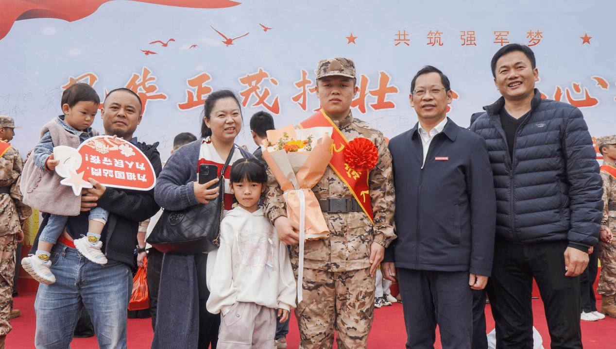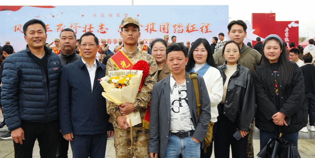 在欢送大会现场,新兵们的家人和朋友也纷纷前来送行。他们眼中饱含着不舍和骄傲,为孩子们的勇敢选择感到自豪,也为他们即将踏上的征程送上祝福。仪式特别设置“出征签名墙”,新兵与家人合影留念并写下报国誓言,温情与壮志交织。