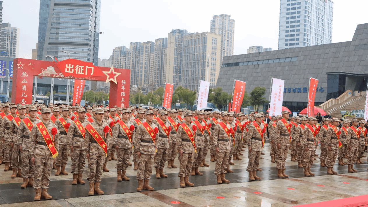 “出征”!随着一声令下,新兵们与亲朋好友一一告别,带着家人的嘱托和期望,齐声高唱军歌,迈着整齐的步伐,穿过象征着荣耀与使命的出征门,登车出发,奔赴祖国大江南北,正式开启自己的军旅生涯,投身国防一线,担负起保家卫国的使命。