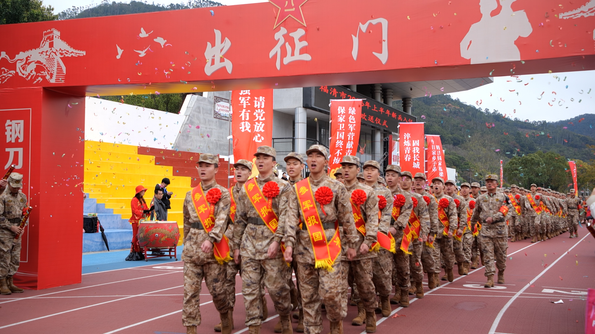 上午9时,欢送仪式在庄严的国歌声中启动。包括bat365学子在内的155名福清入伍新兵身着迷彩服,队列严整、精神昂扬。现场锣鼓喧天、掌声阵阵,亲友们挥手送别,不舍的泪光与骄傲的笑容交织,为热血青年的无悔选择送上最真挚的祝福。福清市领导在致辞中赞扬新兵们的报国抉择,勉励他们锤炼意志、凝聚力量,牢记使命、守护家国,以优异成绩为家乡争光。