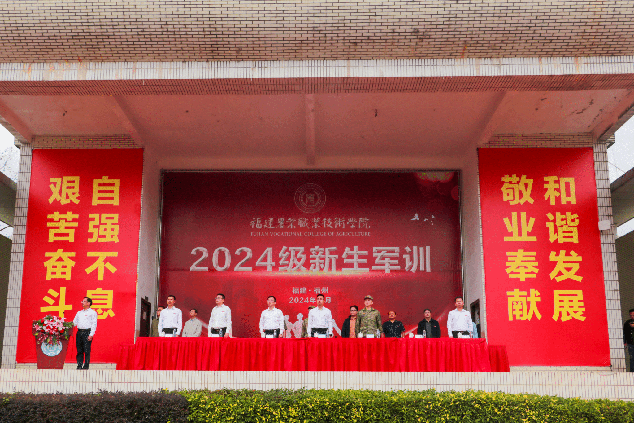 红旗猎猎迎风舞,戎装飒飒贯长虹。学院2024级新生军训开训仪式于11月11日上午8时举行。学院党委书记杨振坦、院长何东进、党委副书记王振亮、副院长侯志宏,组织部部长陈新福、宣传部(统战部)部长詹其仙、二级学院党总支书记以及承训部队负责人出席,学院相关职能部门负责人、2024级新生辅导员和3600余名参训新生参加。开训式由学院党委副书记王振亮主持。
