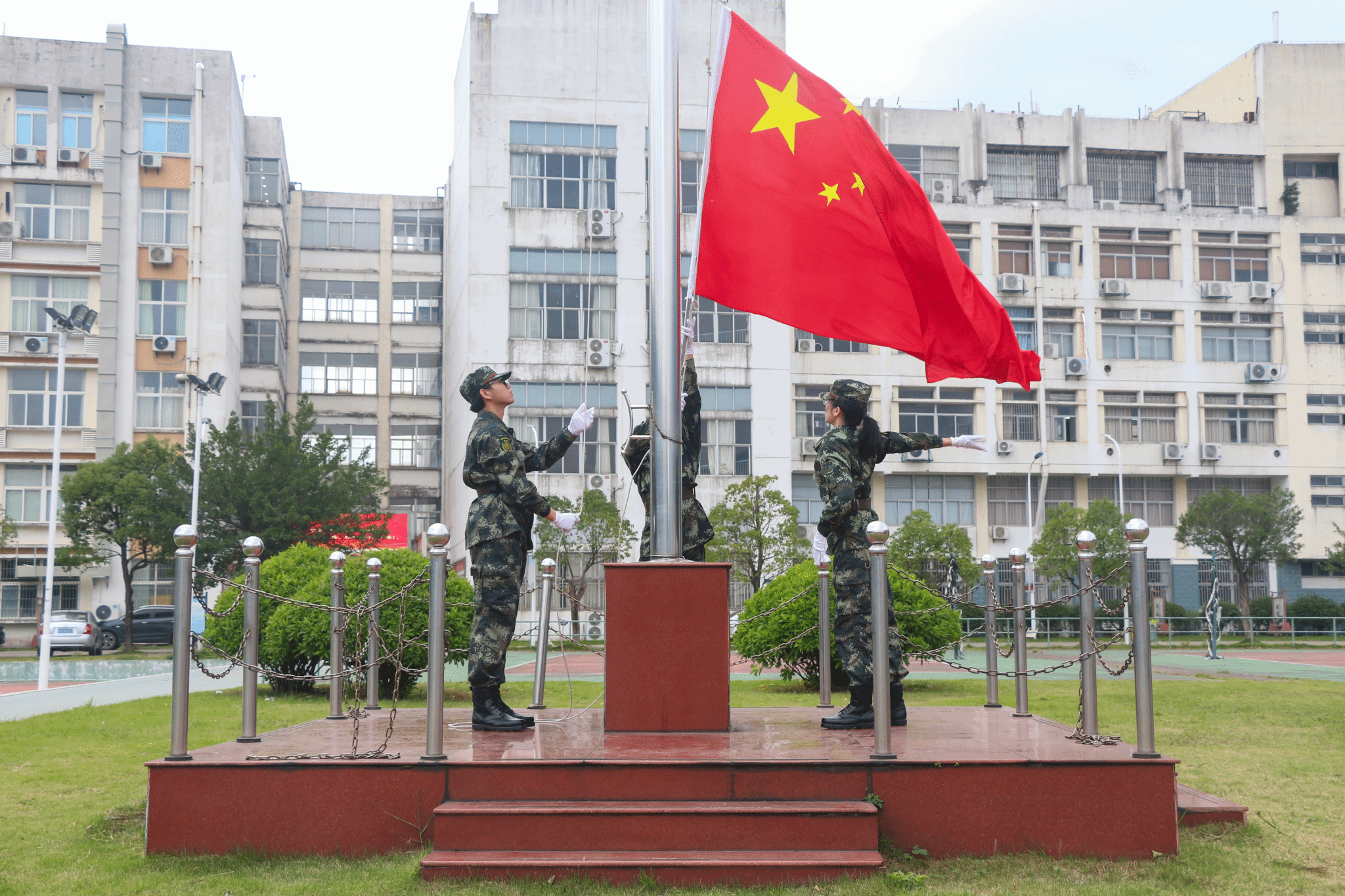 在激昂的国歌声中,鲜艳的五星红旗冉冉升起,开训仪式拉开序幕。