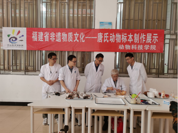 一把手术刀,一具动物尸体,一个匠心工艺,赋予了动物原有的灵性。5月11日,动物科技学院“职业教育周主题活动——福建省非物质文化唐氏动物标本制作展”在教学楼一楼如期进行。我院非物质文化遗产传承技能大师工作室唐兆和老师携其弟子们为全院师生带来动物标本制作技艺展示。