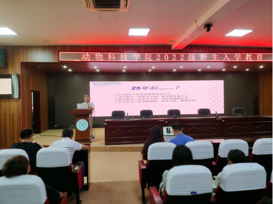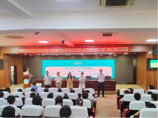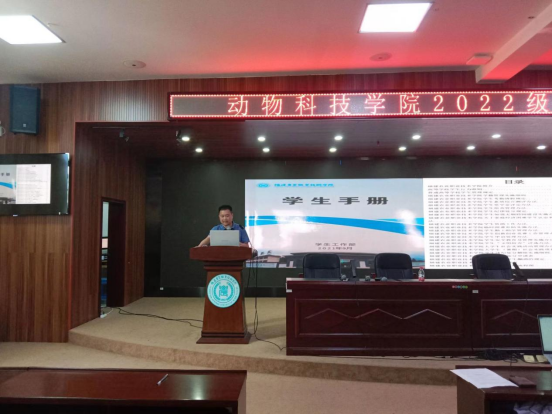 图1 陈闻莉老师为22级新生介绍动物科技学院教学管理团队