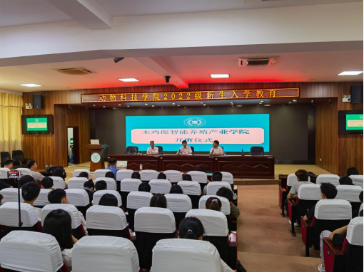2022年9月23日上午,动物科技学院在闽台楼学术报告厅召开2022级新生入学教育暨木鸡郎智能产业学院开班仪式。动物科技学院党总支书记、院长阮国荣,党总支副书记林秋敏、副院长韩云珍,各办负责人、专业带头人及全体辅导员参会,会议会由学工办负责人陈闻莉主持。本次大会通过线上线下相结合的形式为大家打造了一堂“新生入学教育第一课”。