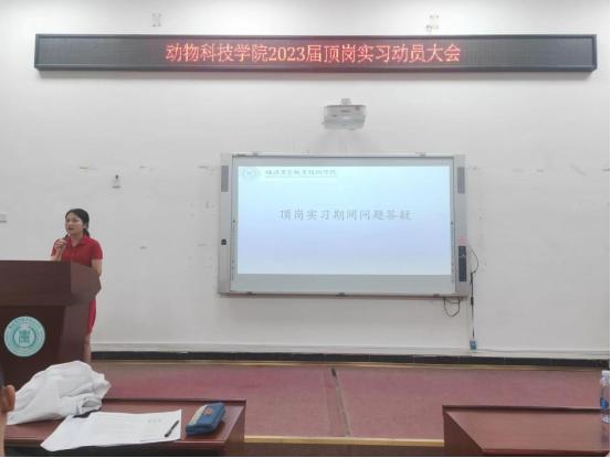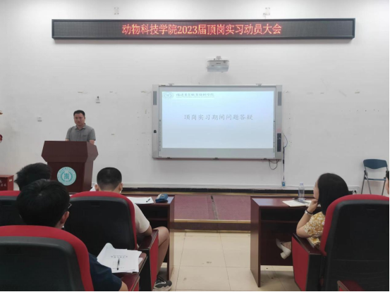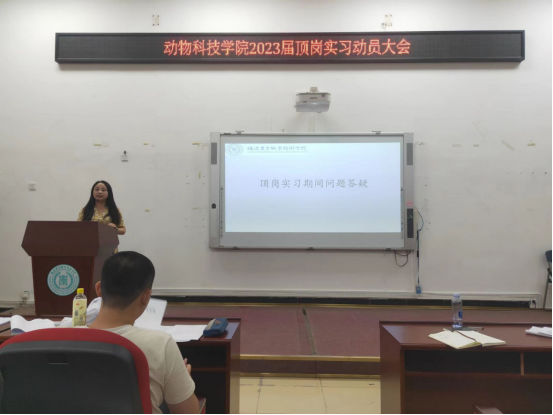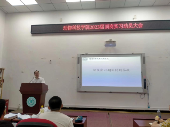 2022年9月7日下午,动物科技学院2023届顶岗实习动员大会在生物楼212举办,学院副院长韩云珍、党总支副书记林秋敏、各办负责人及2018级畜牧兽医专业(五年专)全体同学参加了动员大会。