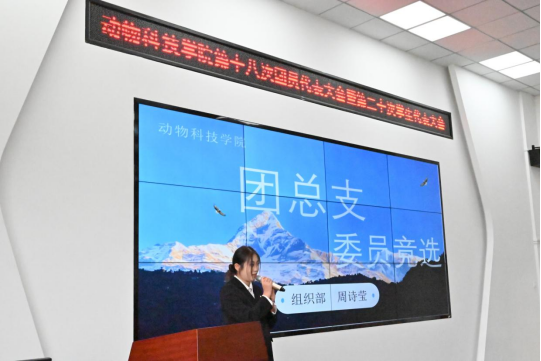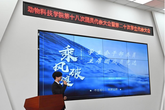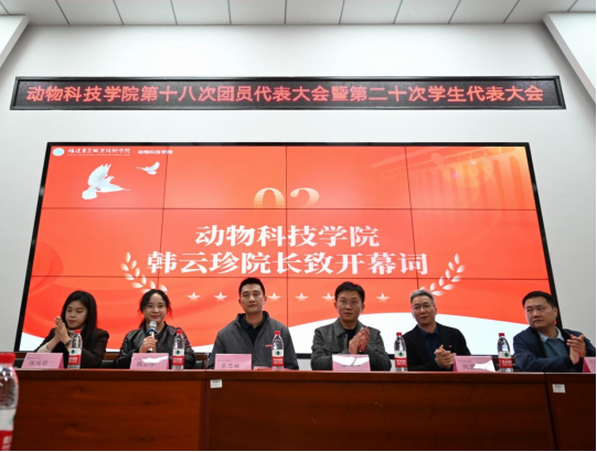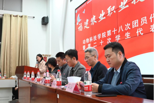 2023年12月6日晚,动物科技学院第十八次团员代表大会暨第二十次学生代表大会在生物楼212学术报告厅隆重召开。校团委张溪辉老师、校学工部蔡思雄老师、动物科技学院党总支阮国荣书记、韩云珍院长、林秋敏副院长、学工办负责人陈闻莉老师、各二级学院学生代表和一百余名团学代表参与此次会议。本次大会由动物科技学院团总支书记陈芬老师主持。