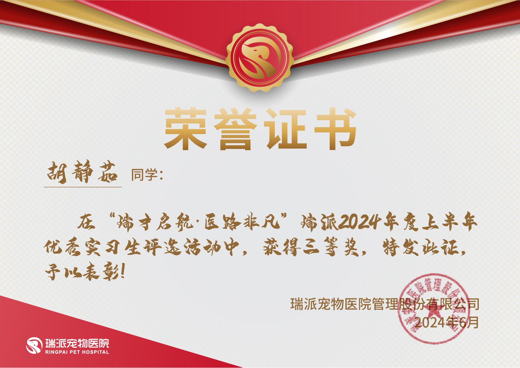 瑞派宠物医院的表彰旨在激励实习生们持续追求卓越,以高标准要求自己,为宠物医疗行业的发展贡献力量。我院对学生们取得的优异成绩表示热烈祝贺,并期待他们在未来的职业生涯中继续发光发热,成为行业的佼佼者。
