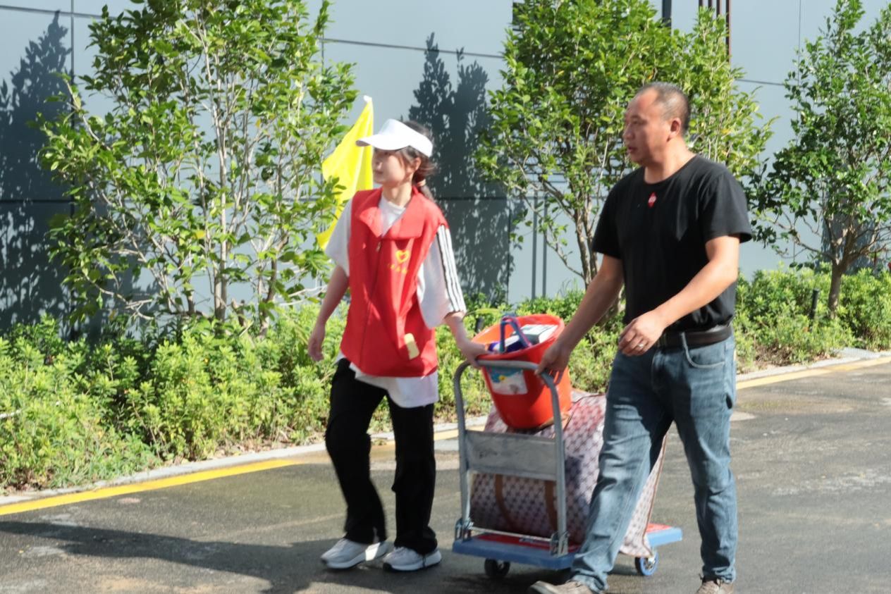 “请问新生报到处怎么走?”、“我的宿舍楼在哪个方向?”面对新生的种种咨询,志愿者们面带微笑、耐心细致地回答,面对携带行李的新生,志愿者们主动上前服务,帮忙运送,确保每位新生都能轻松顺利地到达宿舍。
