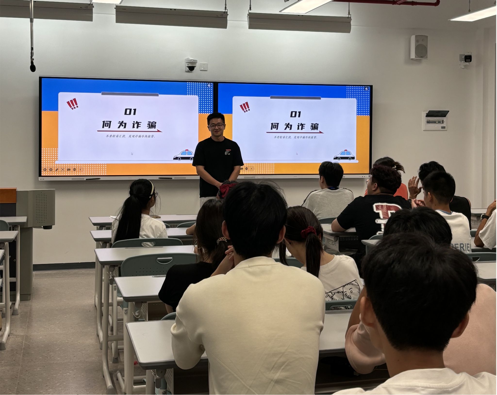 班会上,老师们为新生们做校情院情介绍,重点从消防安全、网络安全、防范诈骗、心理健康等方面进行宣传教育,通过生动鲜活的警示案例,让学生将安全意识根植于心,践行于实际生活中。