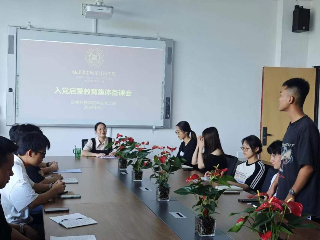 9月18日动物科技学院学生党支部召集“相思岭笃行宣讲团”学生党员在动科大楼201开展入党启蒙教育集体备课活动,活动由学生党支部书记林君瑾主持。