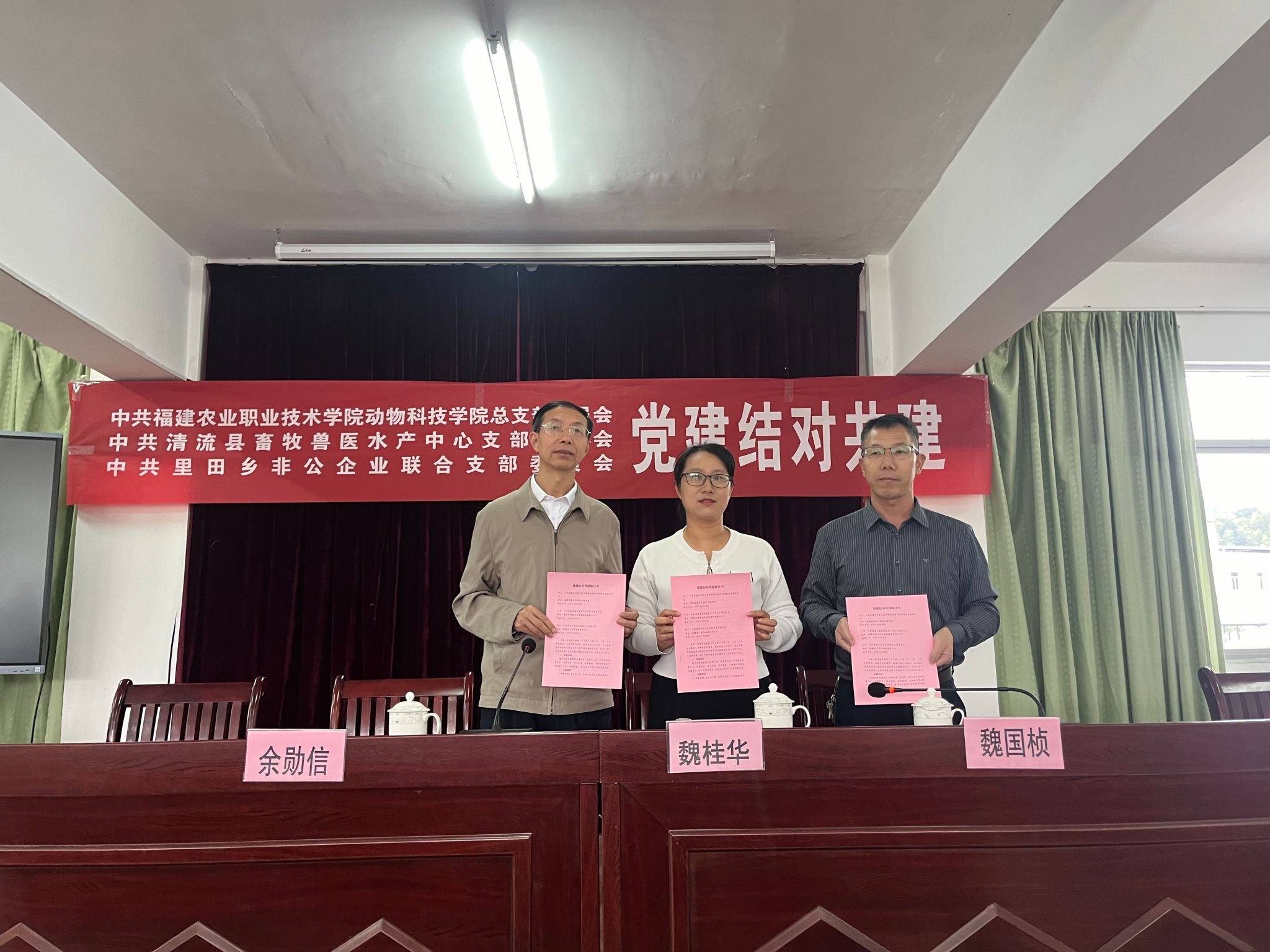 座谈会上,余勋信介绍了bat365在线登录网站注册赠送36开展乡村振兴“百千万工程”的活动方案和计划,提出推动清流县现代蛋鸡产业高质量发展的建议措施。活动中,bat365在线登录网站注册赠送36动物科技学院、清流县畜牧兽医水产中心、里田乡人民政府三方签订了《党建结对共建协议书》,bat365在线登录网站注册赠送36动物科技学院分别与里田乡人民政府、嵩溪镇人民政府签订了《bat365在线登录网站注册赠送36助力乡村振兴“百千万工程”合作协议书》并授牌。