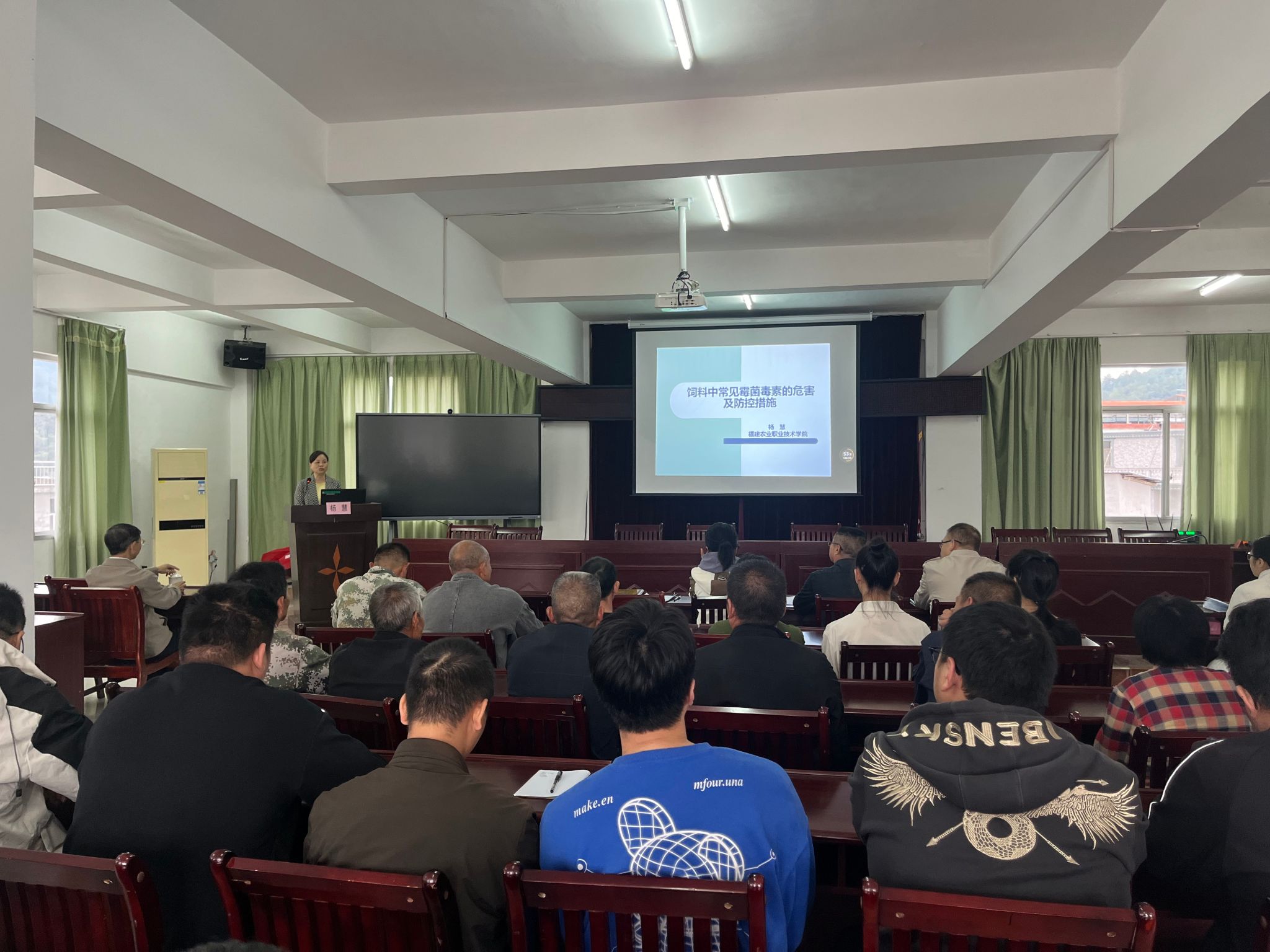 福建农业职业技术学院教授、福建省家禽产业体系岗位专家杨慧分别在里田乡、嵩溪镇开展了《饲料中常见霉菌毒素的危害及防控措施》两场专题授课,并进行饲料霉菌检测现场演示和实操培训,畜牧兽医干部、养殖技术人员和村级动物防疫员共计70余人参加培训,一些参训人员通过实践操作掌握了霉菌检测操作技术。
