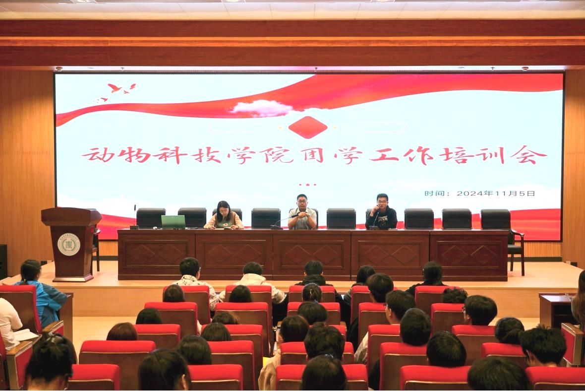 11月5日晚,动物科技学院团委于动科大楼学术报告厅召开了学院团学工作例会。动物科技学院党总支洪渊副书记、团委负责人陈芬老师、专职辅导员张晓华老师和200余名团学干部、干事参与此次会议。本次会议旨在引导学院两委干部充分发挥其在学生日常管理工作的桥梁纽带作用,切实提升学院团学组织的整体工作能力和服务水平。