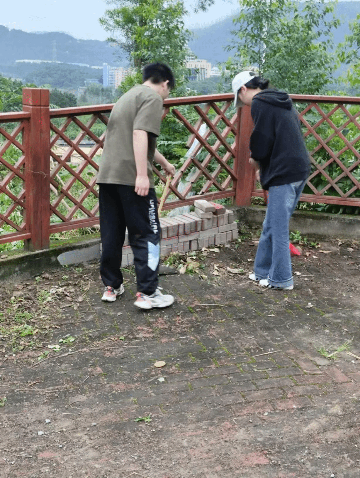 场景三:同学们在宠物小镇开展卫生清扫劳动