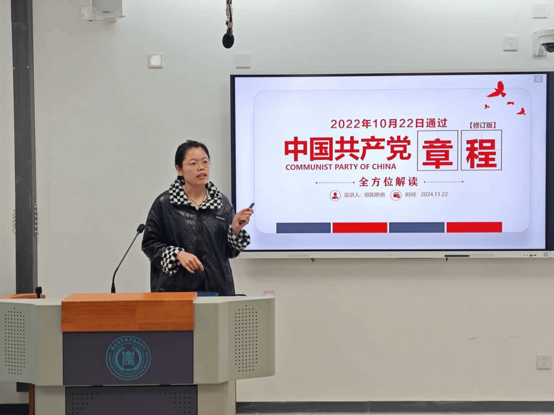 学生第一党支部书记欧阳艳艳为入党积极分子上题为《解读<中国共产党章程>》的党课