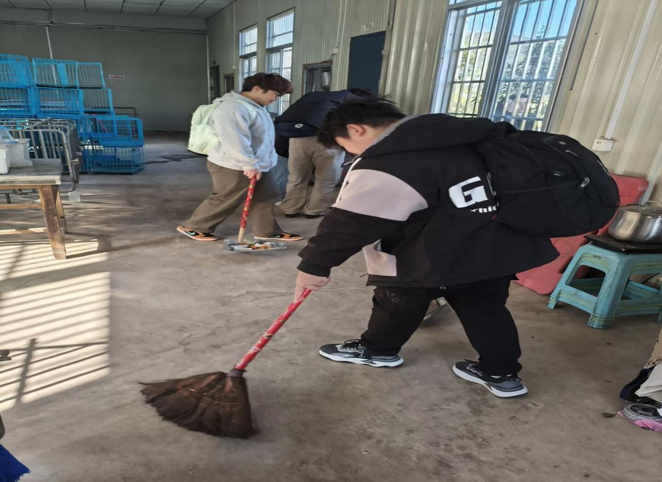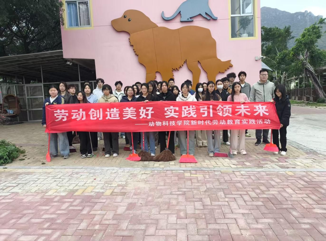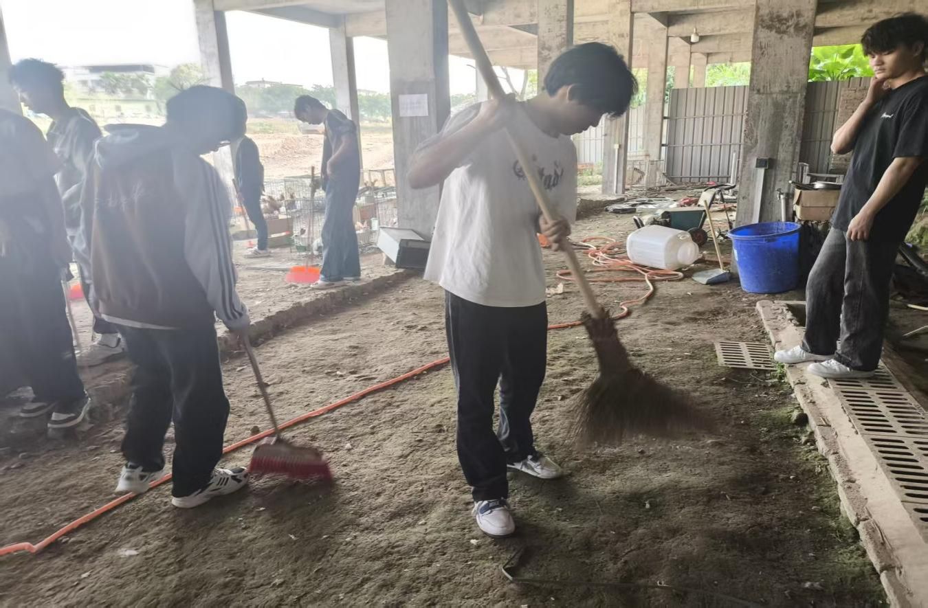 在宠物小镇、动物饲养院、动物病房等专业课实践场所,同学们不怕脏,不怕苦,有序开展宠物粪便清扫、宠物居住环境卫生清洁等劳动,将专业知识转化为服务校园的实际行动。