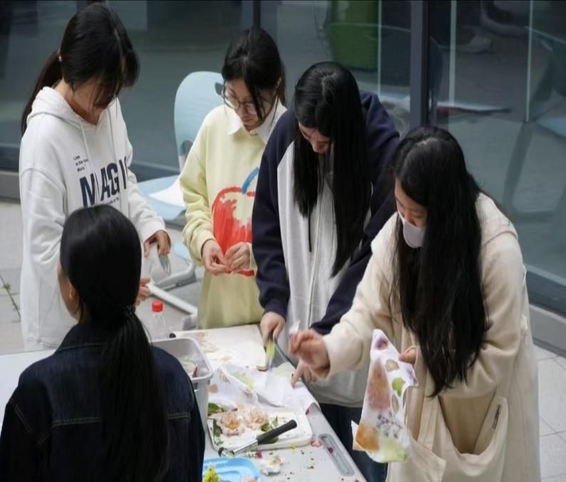 在3月12日的“植物拓印之旅”活动中,同学们亲身实践,动手设计,将植物拓印在棉纱布中形成一件件精美的手工作品,不仅提高了劳动实践能力,也激发了劳动创造力和想象力。