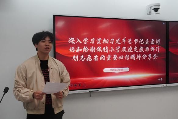 2025年5月7日,动物科技学院在动科大楼305教室开展深入学习贯彻习近平总书记重要讲话和给谢依特小学戍边支教西部计划志愿者的重要回信精神分享会。本次分享会旨在加强对广大青年学子的政治引领,更好地团结、组织、动员广大青年学子到西部去、到基层去、到祖国最需要的地方去,在中国式现代化建设中挺膺担当。