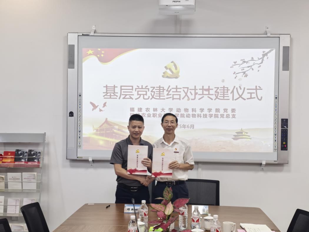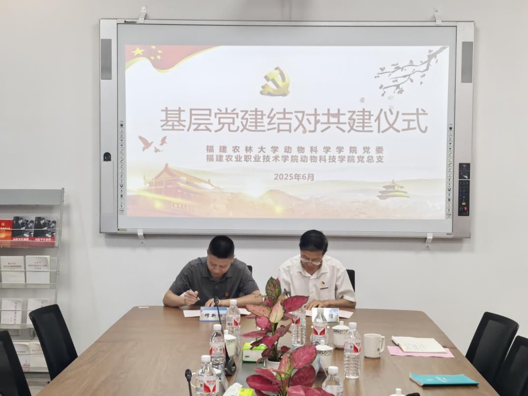为推进高校之间党建交流合作,促进高校党建工作发展。2025年6月25日,动物科技学院党总支与福建农林大学动物科学学院党委签订党建结对共建协议。福建农林大学动物科学学院党委书记修新田、党政办主任廖文全、党委组织员郑罡、动物医学系党支部书记周东辉、兽医学研究生党支部书记张务平、动物科技学院党总支书记余勋信、副书记(院长)韩云珍、学院科研与社会服务处副处长(主持)徐磊、副书记洪渊、副院长胡美华和潘书磊、动科教授杨慧以及动科党总支委员等十余人出席活动。活动由动科党总支书记余勋信主持。