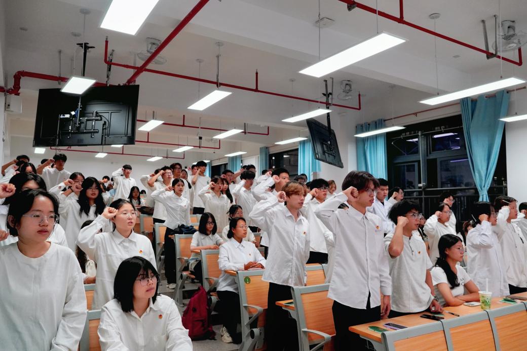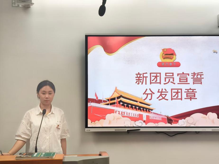 在优秀团员代表李佳悦同学的带领下,全体新团员面向团旗,以铿锵有力的声音庄严宣誓。誓言回荡,彰显了他们作为党的助手和后备军以及为共产主义事业不懈奋斗的坚定信念与青春担当。