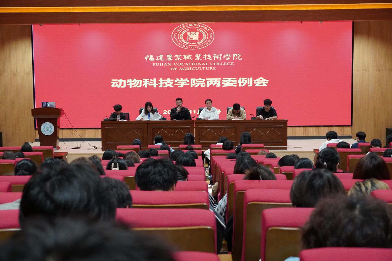 11月17日晚,动物科技学院在动科大楼学术报告厅召开团学两委例会。会议由学院团委副书记蔡雨欣主持,学工办负责人张晓华老师、团委负责人陈芬老师及全体学生干部共同参加。
