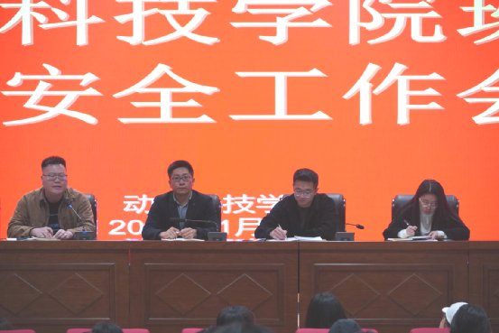 寒假前夕,为切实做好2026年岁末年初及寒假期间安全管理工作,1月18日,动物科技学院在动科大楼学术报告厅召开两委干部工作周例会暨全体班委期末安全工作会议,学院党总支副书记洪渊、学工办负责人张晓华、分团委书记陈芬及师生代表共计230余人参加,会议由张晓华主持。