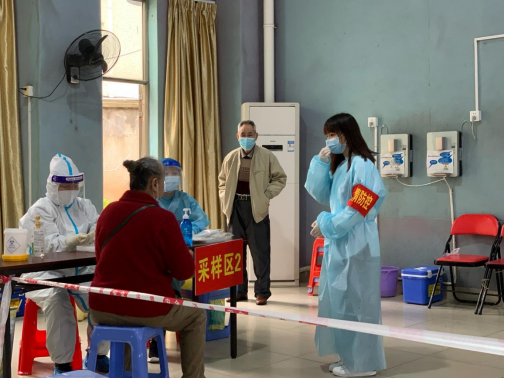 疫情就是命令,行动彰显担当。哪里有需要,哪里就有冲锋在前的突击队青年。吴沂彬同志把初心写在行动上,把使命落在志愿者岗位上,不畏疫情、听从安排,不怕苦、不怕累,在做好自身防护的同时,协助医护工作人员进行核酸检测采样工作,做到“应检尽检”、“愿检尽检”,筑牢安全屏障。积极参与社区核酸检测的信息采集、样本采样、现场消毒、亮码测温等服务,确保核酸检测采样工作科学、精准、安全、有效地开展。吴沂彬说:“相比前线的医护人员,我做的这些真的很微不足道,一代人有一代人的责任,作为动科学院学生党支部的一名学生党员,我想证明疫情当前我们大学生志愿者没有退缩,而是勇敢的冲在前面!”
