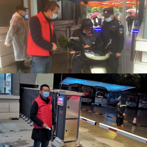动科教师党员志愿者协助督促门口保安做好入校人员的身份核实(非校内工作人员原则上不得入校),查验佩戴口罩情况、绿码、行程码、核酸报告等工作。坚守好校门口第一道防线。