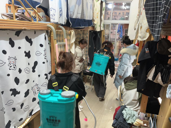 春季是传染性疾病的多发季节,为确保春季学期开学各项安全工作落实到位,从紧从严从细抓好新型冠状病毒感染“乙类乙管”下学校疫情防控各项举措,优化学生学习、生活环境,保障学生生活平稳有序进行。在各宿舍按要求做好常规清洁和消杀防护的前提下,2月18日学生党支部组建以学生党员和入党积极分子为主要成员的宿舍消杀志愿服务队,开展为期2个月的宿舍卫生消杀强化工作。