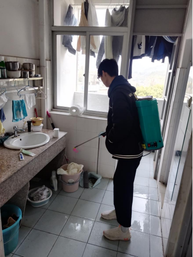 志愿服务队在教师党员叶延嵛老师的带领下进行合理分工分组及工具配备。在开展志愿服务的过程中志愿者们严格按照卫生消杀要求进行规范操作,采用“地毯式”的消毒方法,从心开始、从细着手地对学生宿舍开展消杀工作,做到“全覆盖、无死角、零遗漏”。同时,重点加强对洗手间、水池、角落、垃圾桶等关键区域的消杀力度,确保消杀的质量不打折扣。
