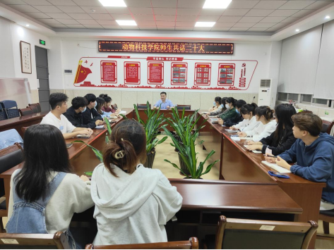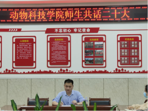 在全校上下学习宣传贯彻党的二十大精神之际,11月18日晚,动物科技学院学生党支部开展“师生共话二十大座谈会”,动物科技学院党总支副书记林秋敏出席了此次座谈会,学生党支部教师党员叶延嵛、学生党员及积极分子代表共20人参加了此次座谈会。