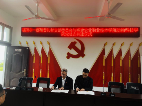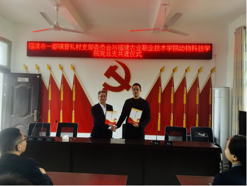 最后,为了不断深化立体化红色育人模式,动物科技学院党总支与福清市一都镇普礼村支部委员会签订党建共建协议,双方决定充分发挥各自优势,在定期开展红色教育活动的基础上,加强交流沟通,携手促进乡村振兴。