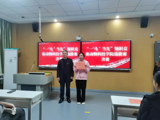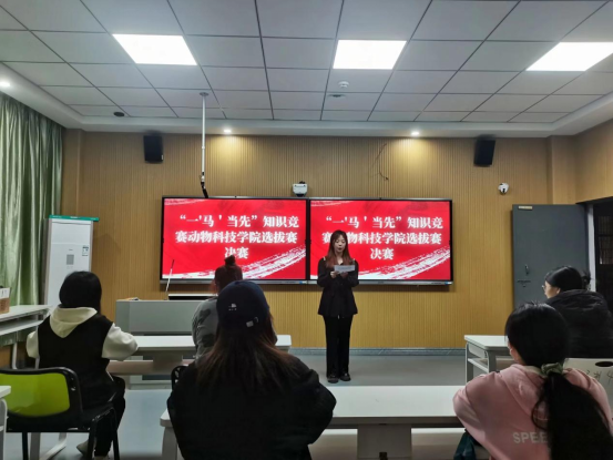 2023年3月19日,由动物科技学院学生党支部主办“一马当先”知识竞赛动物科技学院选拔赛决赛在教学楼203顺利进行。