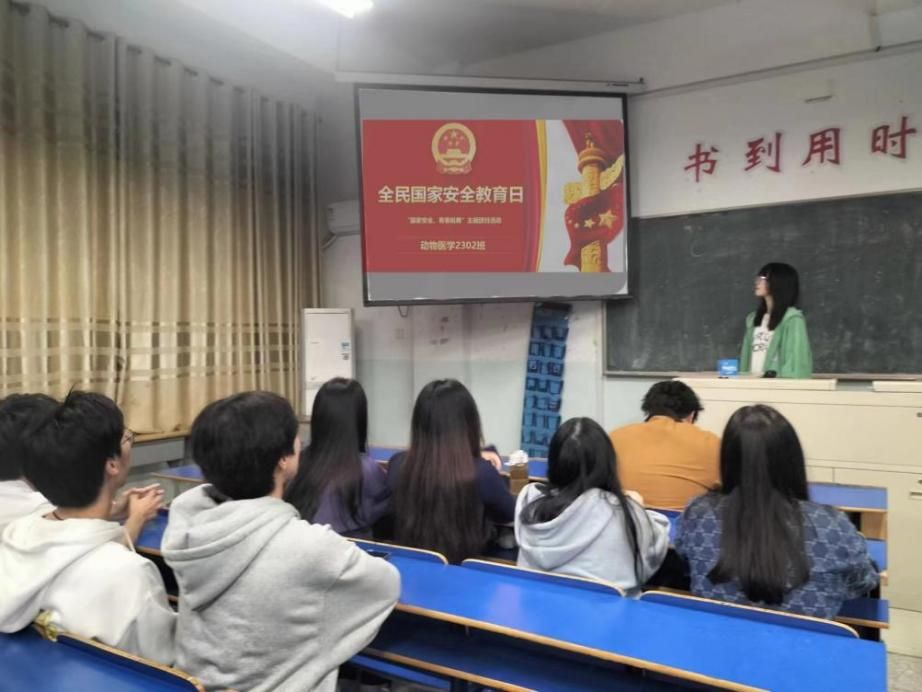 4月11日、12日,动物医学23级全体团支部开展以“国家安全,青春挺膺”为主题的团日活动,团支书为团员们介绍了总体国家安全观的发展情况、核心内容、包括领域以及核心要义,引导团员青年明确“全民国家安全教育日”的重要性。
