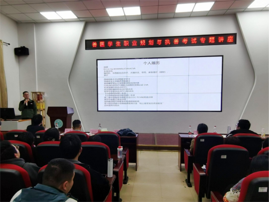 3月1日晚,“兽医学生职业规划与执兽考试”专题讲座在教学楼212举行。本次讲座由华南农业大学博士生导师石达友教授、福州启林猫专科林辉院长主讲。动物科技学院阮国荣院长、钟佳莲老师和150名兽医学生参加讲座。