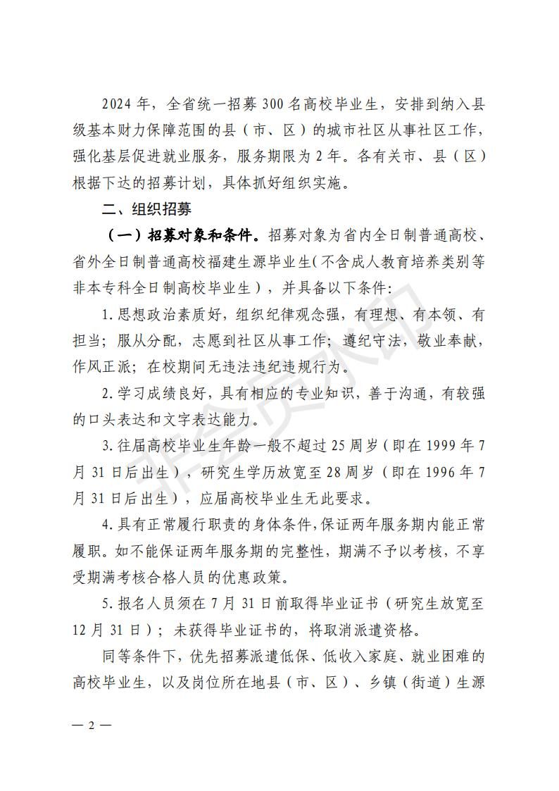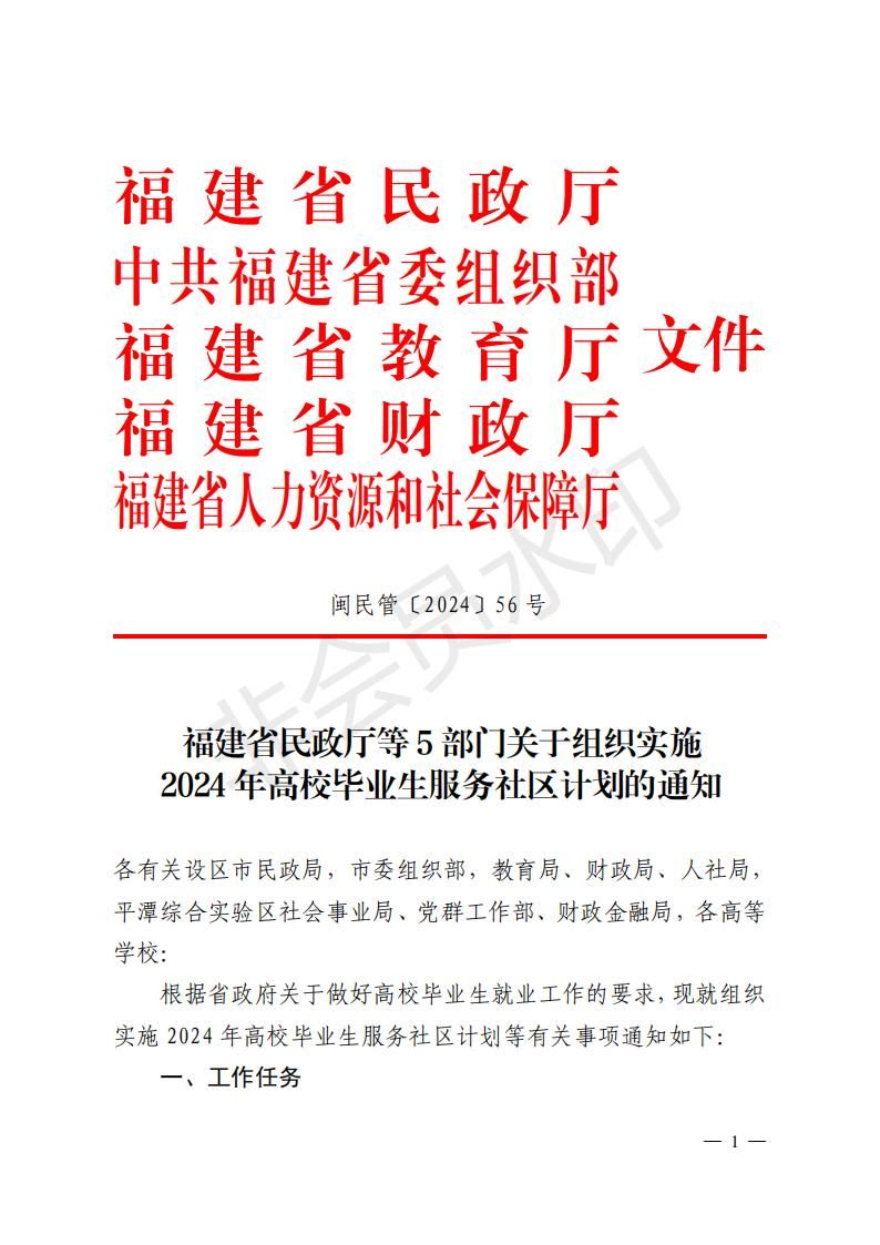 福建省民政厅等5部门关于组织实施2024年高校毕业生服务社区计划的通知