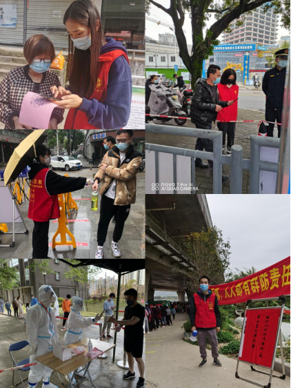 在教师党员积极投身抗疫一线的同时,动科学生党支部发出《勇担重任 、 共克时艰 》的倡议 ,为此,一方面在外实习的15名学生党员主动请缨、积极投身到所在社区参与防疫志愿服务工作。在核酸检测采样现场,他们分别在队伍排列处、入口登记处、采样处做好人员分流引导、维持排队秩序、协助信息采集,为核酸检测的有序开展提供帮助,一个个身穿红马甲、防护服的志愿者成为抗疫一线的亮丽风景,受到地方政府的称赞和表彰。其中,动科学生支部学生党员吴沂彬同志被漳州芗城通北街道党支部授予“最美志愿者”荣誉称号。