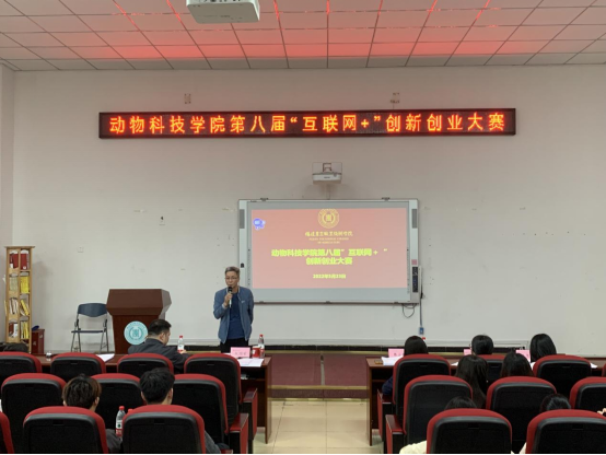 2022年5月23日下午,动物科技学院在生物楼212成功举办第八届“互联网+”创新创业大赛。动物科技学院100余名同学参加了本次活动,阮国荣院长、韩云珍副院长、林秋敏副书记、双创与招就办主任钟佳莲、学生党支部书记林君瑾等五位老师担任大赛评委。