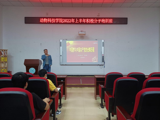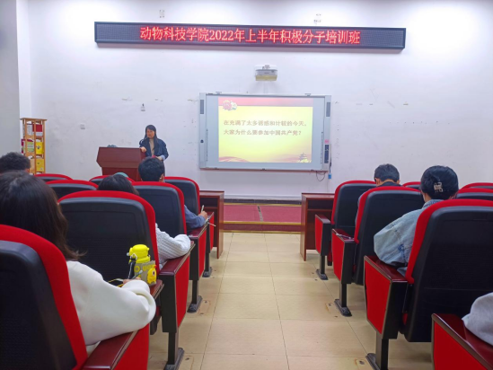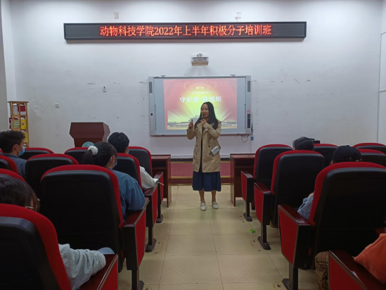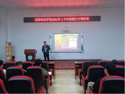 4月17日-5月6日动物科技学院党总支开展第十期入党积极分子培训班,共有47名学生入党积极分子参加。培训中,学院党总支书记阮国荣、副书记林秋敏、教工第一支部书记韩云珍、教工第二支部书记林雪玲、学生党支部书记林君瑾、党政办负责人刘舒婕等同志为我院学生入党积极分子讲授《中国梦与中国共产党的光辉历程》《党的性质、宗旨和指导思想》等主题党课。