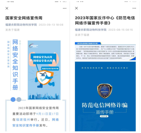 9月11-17日,2023年国家网络安全宣传周期间,动物科技学院学生党支部开展网络安全教育主题活动,通过LED、公众号宣传、主题班会、打卡拍照等系列活动,大力开展校园网络安全教育工作。