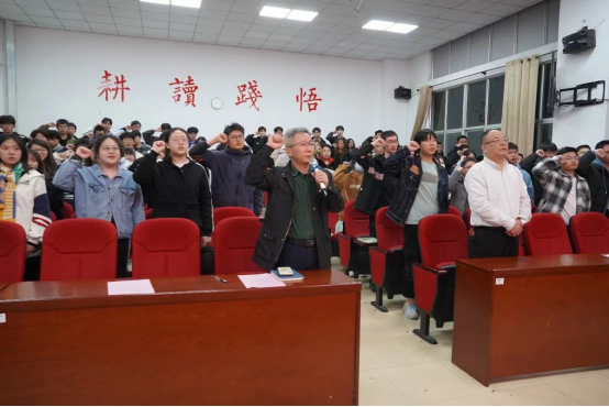 开班仪式上,由动物科技学院党总支阮国荣书记领誓,践行班全体学员们就践行“六个一”进行了宣誓。