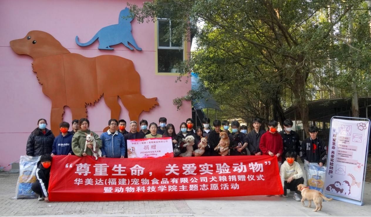 2024年1月11日下午,动物科技学院与华美达(福建)宠物食品有限公司联合举办了一场以“尊重生命,关爱实验动物”为主题的志愿活动。此次活动目的是改善实验犬的饲养管理条件,培养师生尊重生命的人文精神。