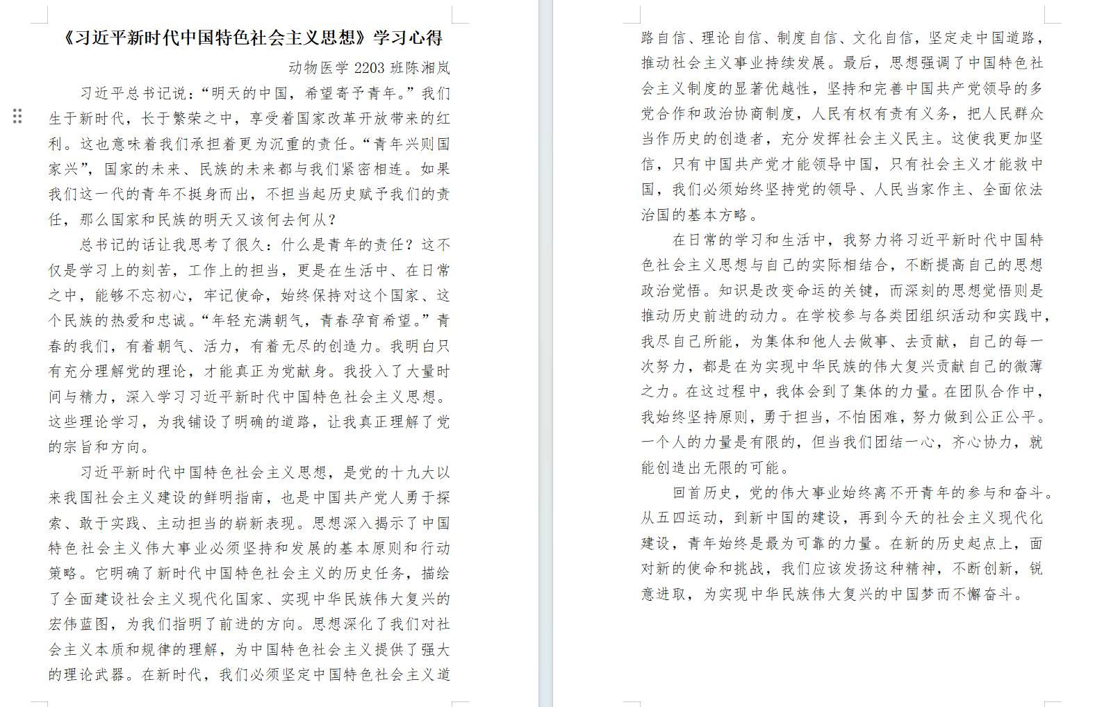动物医学2203班陈湘岚 学习习近平新时代中国特色社会主义思想心得体会