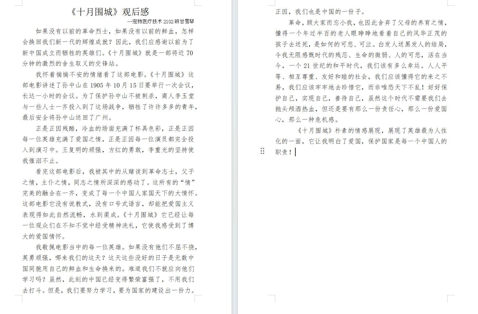 宠物医疗技术2102班甘雪琴 《十月围城》观后感