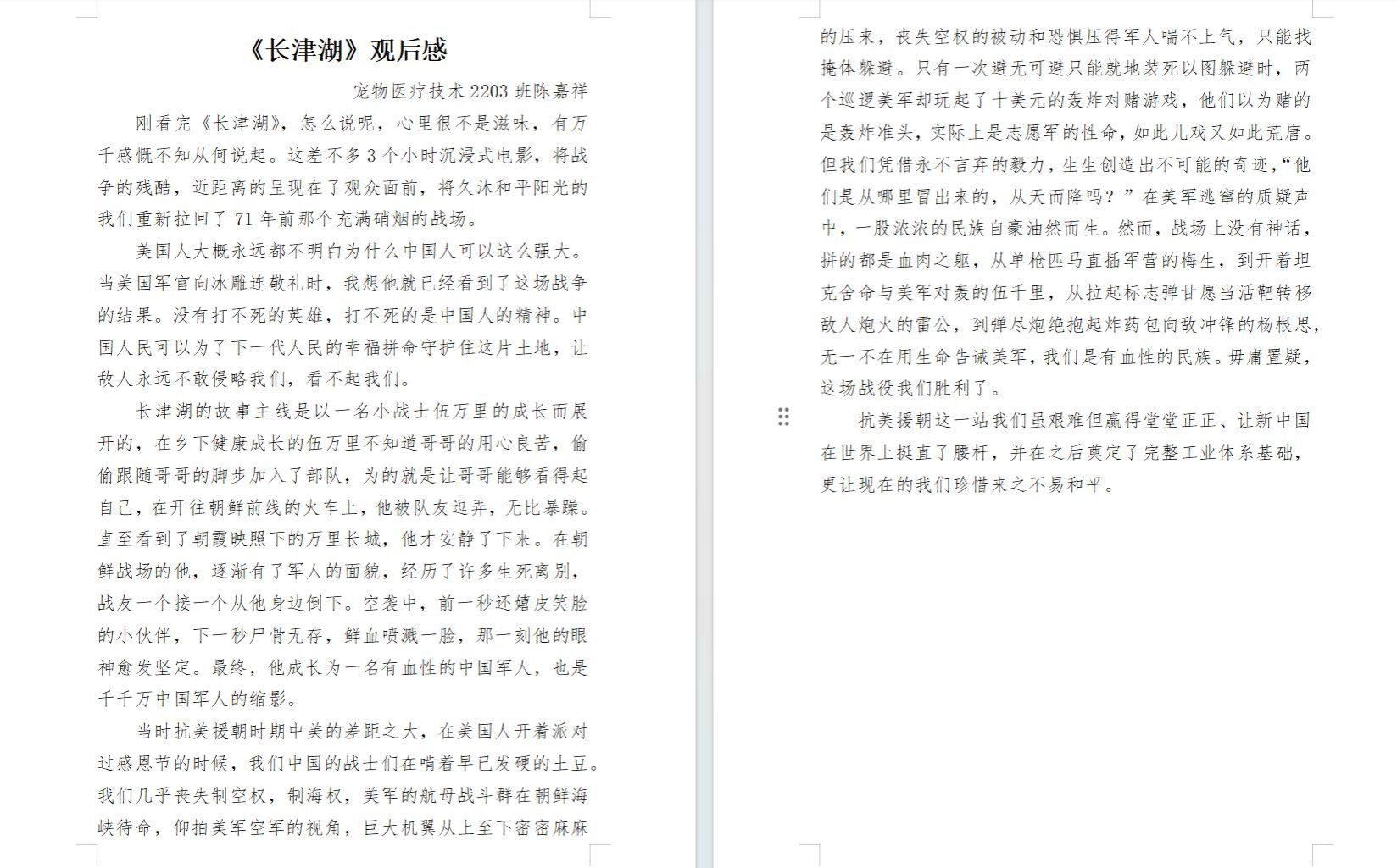 宠物医疗技术2203班陈嘉祥 《长津湖》观后感